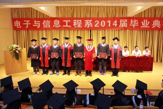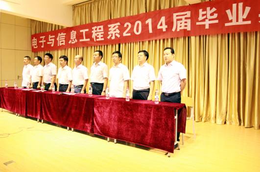 电子与信息工程系2014届毕业生毕业典礼于6月25日下午在1401室隆重举行。PP电子游戏平台网站副校长陈刚、系主任张东红、系党总支书记李红兵、系副主任陈守满、系副主任王庆春、系办公室主任刘宏、系学工办副主任石纭昊、各教研室主任以及197名毕业生参加了此次典礼。此次典礼由党总支书记李红兵主持。