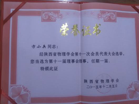 陕西省物理学会2015年学术年会于2015年12月5日在西北工业大学长安校区举行。本届学术年会由陕西省物理学会主办,西北工业大学承办,高等教育出版社及7家科技公司协办。大会主席为侯洵院士,大会执行主席为白晋涛、陈光德教授,大会副主席为田东平、李福利、赵建林、郭立新、屈世显教授。我院选派2名教师参加了本届年会。