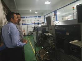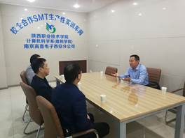 4月27日上午,飞瑞敖公司康耀总经理、陕西职业技术学院信息工程学院张克院长等人带领大家一起参观了校企合作SMT生产性实训车间,详细介绍了实训车间的建设情况及在实践教学中的运营管理模式。