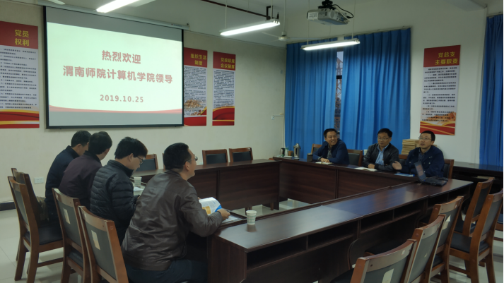 10月25日下午,渭南师范学院计算机学院院长刘军,书记杨洁,副院长何小虎,信息技术素养课程群负责人奚建荣一行到我院开展工作交流。PP电子游戏平台网站院长陈守满,副院长王庆春、王克刚,信息技术教研室主任宋权华热情接待了刘军一行,并在逸夫科技楼会议室召开了座谈会。座谈会由院长陈守满主持。
