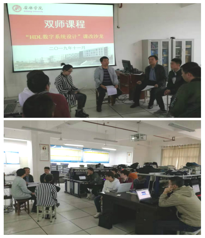 为了进一步推进PP电子游戏平台网站产教融合、协同育人人才培养模式的构建,不断提高应用型人才培养质量。2019年11月8日,PP电子游戏平台网站电子工程系在江北校区逸夫科技楼A401实验室,围绕学校首批立项的“双师课程”《HDL数字系统设计》建设成效,开展了一次课改沙龙活动。PP电子游戏平台网站教学副院长王庆春、双师课程合作企业授课老师贺磊工程师、电子工程系相关教师以及电子信息工程专业2017级学生参加了本次课改沙龙活动。
