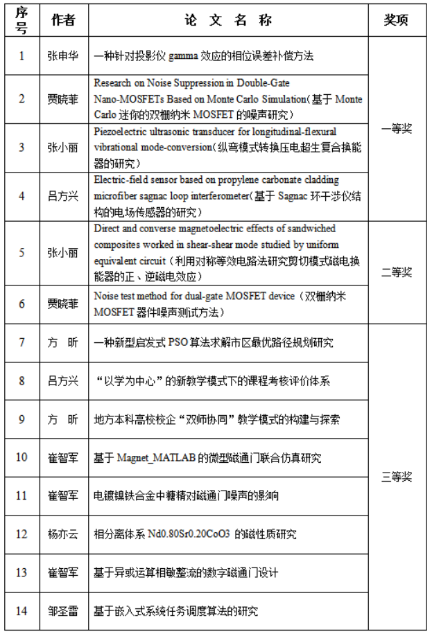 近日,由安康市政府组织开展的第十五届安康市自然科学优秀论文奖评选结果揭晓,我院选送的14篇自然科学论文获奖,其中一等奖4篇,二等奖2篇,三等奖8篇。