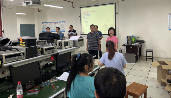 7月24日上午,PP电子游戏平台网站领导班子全体成员、学工办主任石纭昊老师一行来到科技路A601实训室,看望了暑期留校参加2021年全国大学生电子设计竞赛的参赛同学和指导老师,并为师生们带来了关心、问候和鼓励。