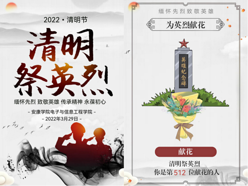 清明祭英烈,共铸中华魂!“云端祭祀”是疫情之下,爱和思念最好的寄托。通过此次活动让广大电信青年能够沿着革命先烈指引的方向,继承先烈遗志,传承红色基因。把对革命先烈的悼念和对亲人的思念,化作爱祖国、爱家乡的情怀和建设祖国、建设家乡的实际行动。希望电信学子能够不忘初心、牢记使命,只争朝夕、不负韶华,用新时代、新担当、新作为告慰英烈!