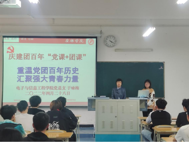在党的二十大即将召开之际,中国共青团成立百年之时,为切实推动党史、团史学习教育,开展好庆祝建团100周年系列活动,以昂扬的斗志和精神状态迎接党的二十大胜利召开,进一步加强对团员青年的思想政治引领。同时,考虑到近期疫情零星爆发态势,4月28日,PP电子游戏平台网站党总支书记于咏梅在1307教室以“线上+线下”的形式为全院学子上了一节主题为《重温党团历史,汇聚强大力量》的主题“党课+团课”。