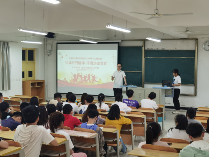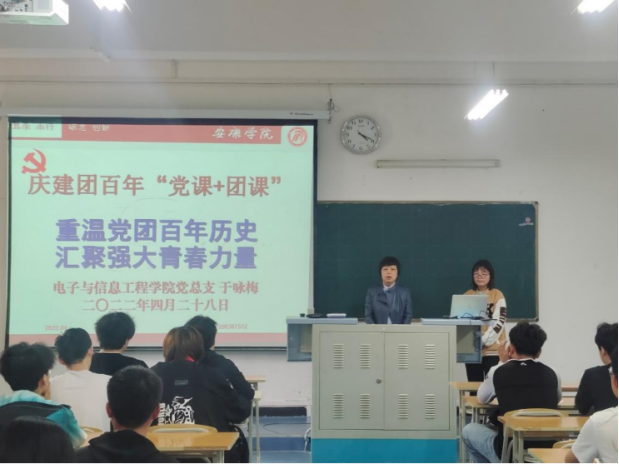 坚持党建带团建 为激发PP电子游戏平台网站广大团员青年爱党、爱国情怀,实现党建带团建的目标,培养电信学子践行社会主义核心价值观,以昂扬的斗志和精神状态庆祝建团百年,迎接党的二十大胜利召开,4月28日,PP电子游戏平台网站党总支书记于咏梅在1307教室以“重温党团历史,汇聚强大力量”为主题,为电信学子上了一堂生动的主题“党课+团课”。