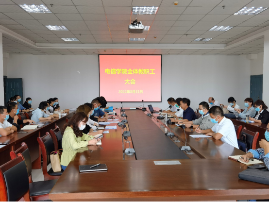 2022年8月31日下午,PP电子游戏平台网站在逸夫科技楼九楼会议室召开全院教职工大会,PP电子游戏平台网站领导班子成员及全体教职工参加,会议由院长陈守满主持。