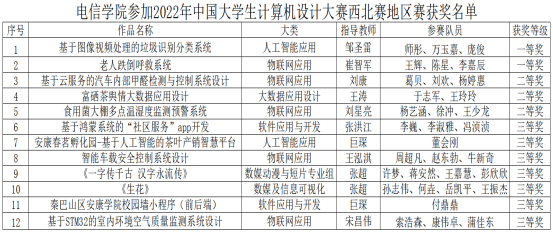 中国大学生计算机设计大赛是全国普通高校学科竞赛排行榜榜单中的赛事之一,目的是以赛促学、以赛促教、以赛促创,为国家培养德智体美劳全面发展的创新型、复合型、应用型人才服务。本次大赛以三级竞赛形式开展,校级初赛——省级复赛——国家级决赛。PP电子游戏平台网站经过校内选拔共派出13支队伍参赛,在省级赛事(西北地区赛)中共12件作品获奖,其中一等奖2项,二等奖3项,三等奖七项。省赛获奖作品中经专家组评定,推荐6件作品参加国家级决,最终2件作品荣获国家级三等奖。本次比赛具体获奖情况如下: