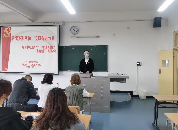 9月29日早上,在第9个国家烈士纪念日到来之际,PP电子游戏平台网站党总支组织学生第一党支部、学生第二党支部、团总支开展“赓续英烈精神 汲取奋进力量”烈士纪念日主题党日、团日活动。PP电子游戏平台网站党总支组织委员成英丽,学生第一、二党支部书记李章雨、吕以宁,学生第二党支部组织(纪检)委员石纭昊,团总支书记张宇航,全体学生党员、团员代表、学生会主要干部、退役大学生士兵代表参会,活动由PP电子游戏平台网站团总支书记张宇航主持。