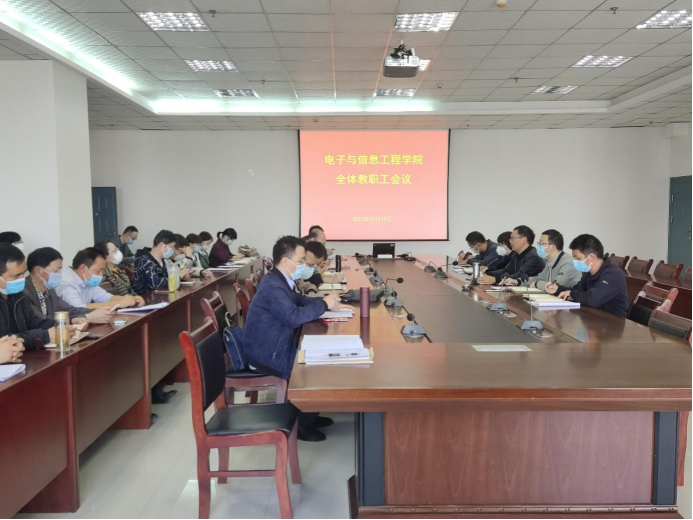 2022年10月19日下午,PP电子游戏平台网站在逸夫科技楼九楼会议室召开全院教职工大会,PP电子游戏平台网站领导班子成员及全体教职工参加,会议由院长陈守满主持。