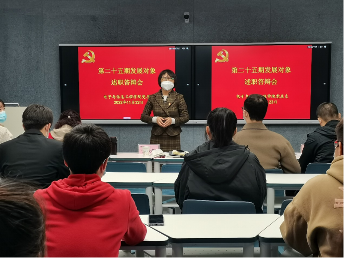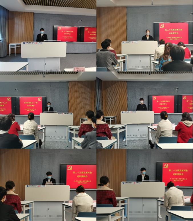 在自我陈述环节,学生党员发展对象就个人基本情况、入党动机、个人思想发展变化过程、所获荣誉奖励等方面进行简要介绍。在老师提问环节,各位老师就关于党的性质、宗旨、指导思想、党员的权利和义务、习近平新时代中国特色社会主义思想、社会主义核心价值观、党的基本路线、中国共产党第二十次全国代表大会的知识等内容和学生如何提高角色意识、履行自身职责,正确处理好学习和工作的关系、如何处理好打游戏问题、如何处理好宿舍矛盾,如何处理好个人与集体的关系等方面展开提问,进一步考察了学生的思想政治素质、对中国共产党的认识、对党的基本理论知识和时事热点的掌握程度,考察了学生的工作能力和工作水平,不断端正学生的入党动机,为党组织选拔政治上可靠、专业上合格的新鲜血液。