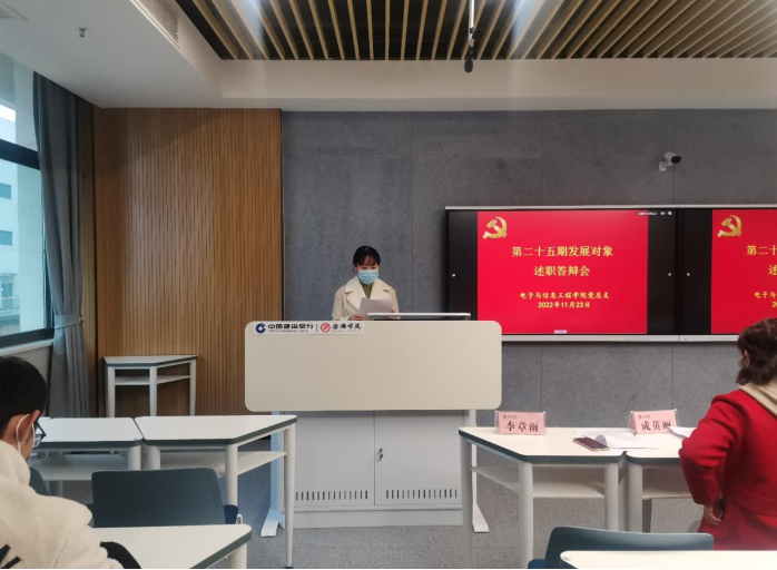 为进一步深入学习领会贯彻党的二十大精神,统一思想,切实增强党支部的组织力、凝聚力和战斗力,提升党员发展质量,结合支部党员发展工作需要,11月23日下午,PP电子游戏平台网站学生第一、第二党支部在江北校区乡村振兴学院研讨室开展了2022年下半年发展对象述职答辩会,PP电子游戏平台网站党总支书记于咏梅,党总支组织委员成英丽,学生第一党支部书记吕以宁(线上参与)、组织(纪检)委员张宇航,学生第二党支部书记李章雨、组织(纪检)委员石纭昊以及20名第25期发展对象参加答辩会。会议由学生第二党支部书记李章雨主持。