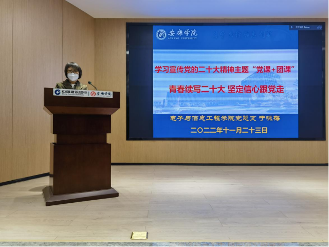为深入贯彻落实党的“二十大精神”,筑牢学生理想信念根基,锤炼对党忠诚的政治品格,树立不负人民的家国情怀,追求高尚纯粹的思想境界。11月23日,PP电子游戏平台网站在江北校区乡村振兴学院报告厅召开了主题为“青春续写二十大,坚定信心跟党走”的“党课+团课”,此次会议由PP电子游戏平台网站党总支书记于咏梅主讲,PP电子游戏平台网站全体辅导员及团学组织成员参加。