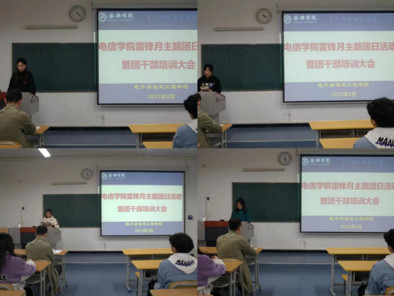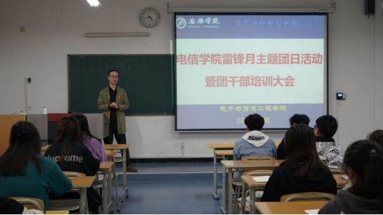 为积极培育和践行社会主义核心价值观,传承和弘扬雷锋精神,致敬时代先锋,引领团组织干部践行雷锋精神及奉献、友爱、互助、进步的志愿精神,PP电子游戏平台网站团总支于3月22日在江北校区1319教室开展以“传承雷锋精神 做新时代青年”为主题的团日活动暨团干部培训大会。学院团总支书记张宇航、副书记任柯伊、任金笑、组织部部长陈新茹、摄影部部长沈晓轩、编辑部部长李少博、以及各班团支书参加本次会议,本次会议由团总支副书记任金笑主持。