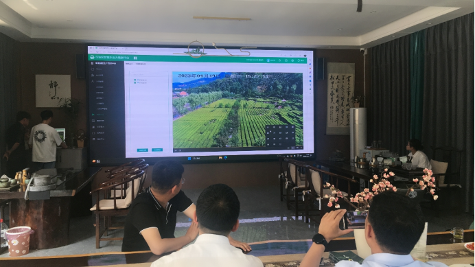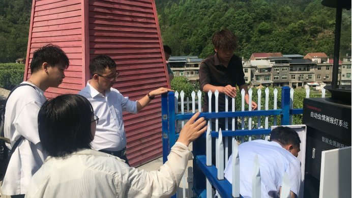 2023年4月19日,“智慧农业创新研究与应用服务团队”主要成员一行来到汉滨区大竹园镇东旭生态农业开发有限公司,“汉滨区智慧农业大数据平台项目”在该地布点涉及茶叶产业。团队成员首先现场对部署的智能虫情测报站进行了检查和维护,随后与企业负责人就本次项目的实施效果进行了交流,向企业工作人员介绍了系统使用的基本方法,包括园区生产管理系统的功能与应用、系统手机APP的使用等。最后,团队成员与企业方就后续开展合作进行了交流沟通,双方均表达了进一步开展智慧茶叶项目建设的合作意愿。