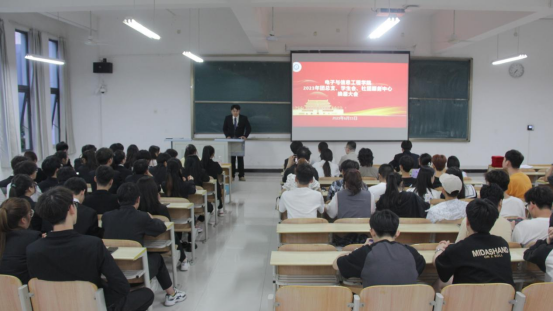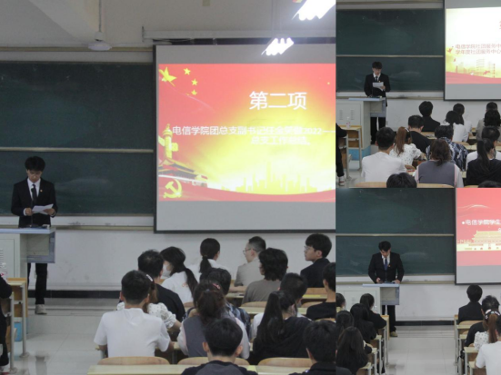伴随着庄严的国歌声,会议正式开始。首先,由PP电子游戏平台网站团总支副书记任金笑总结了2022-2023学年学生干部工作内容。总结了一年以来团总支的各项工作及所获荣誉,并指出了工作中存在的不足,希望新一届学生工作人员能够明确定位,勇于担当,严于律己,自我平衡,不断提升工作能力,充分发挥模范引领作用;学生会主席杨琪汇报了2022-2023学年学生会组织的各项活动及工作总结,并表示要顺应学校的发展,切实起到校学生会为全校同学服务的作用,进一步加大学生会职能部门整合力度,加强后勤工作,积极开展学生会的工作内容;社团服务中心负责人张炬汇报总结了社团服务中心2022-2023学年的活动内容与工作情况,并表示为方便社团内部管理,统筹社团各项工作的开展,充分调动各部门部员的主动性。社团内部采取了各部长独立安排本部门培训工作进程的策略。让各部长带领部员策划本部门的相关培训工作,很好的调动了部长与部员的积极性。