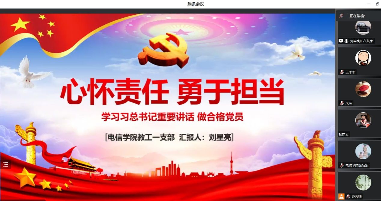 2023年6月29日19:30,PP电子游戏平台网站教工第一党支部通过腾讯会议开展“学习习近平总书记讲话精神,做党和人民满意的好老师”主题党日活动暨支部委员讲党课。活动由教工第一党支部书记赵志强主持,支部全体党员参加本次活动。