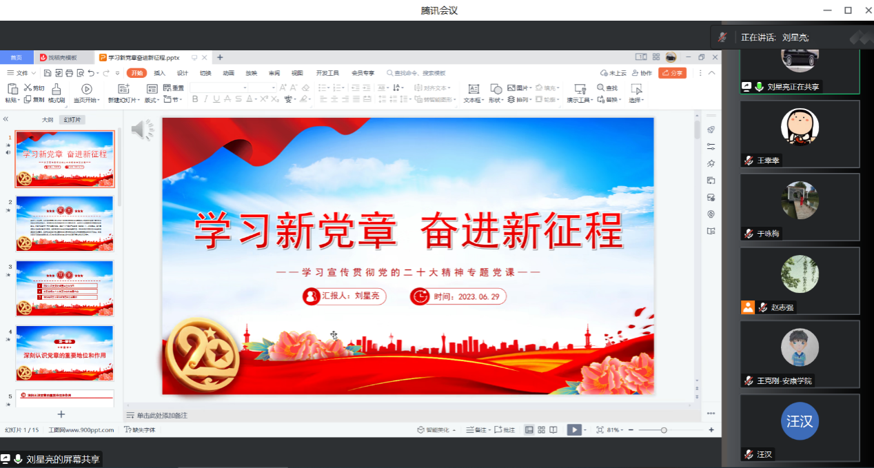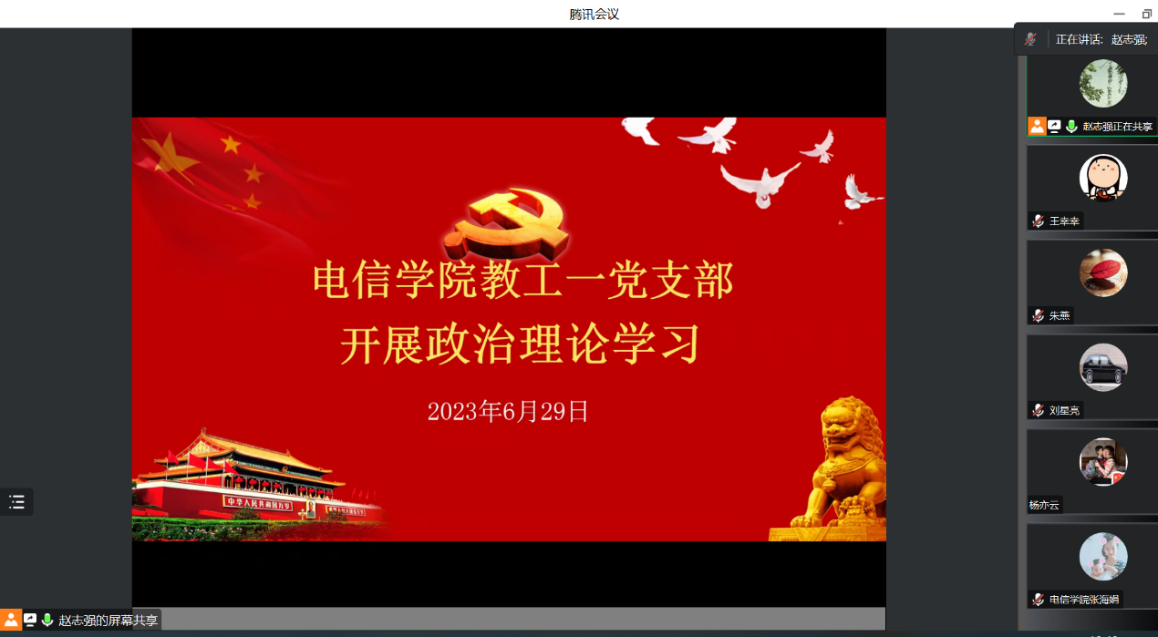 2023年6月29日晚,PP电子游戏平台网站教工第一党支部通过腾讯会议开展纪律教育暨政治理论学习,会议由教工第一党支部书记赵志强主持,支部全体党员参加本次会议。
