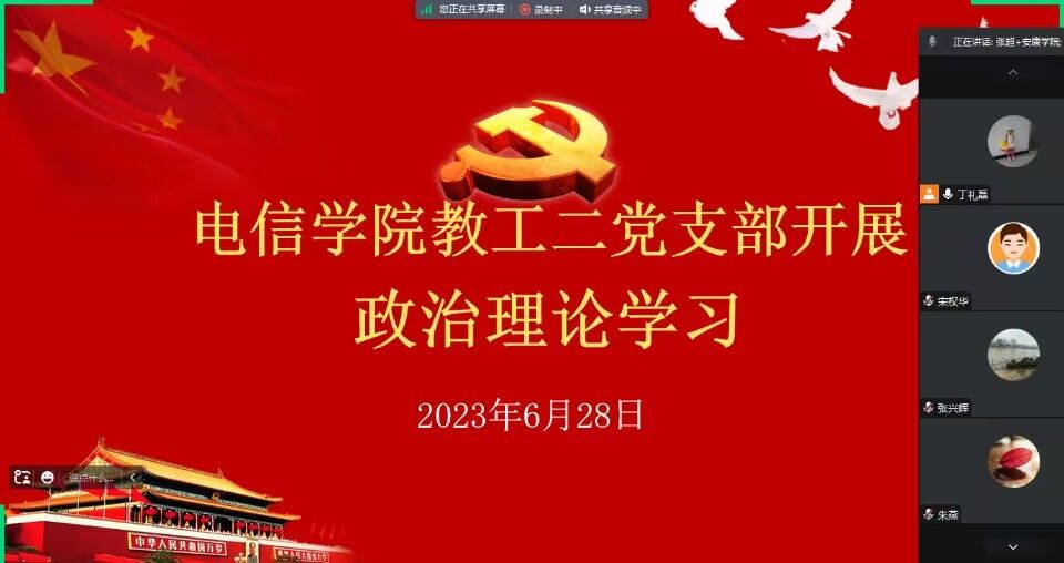 为学习和落实习近平总书记2023年6月2日在文化传承发展座谈会上的重要讲话精神,进一步贯彻落实中共PP电子游戏平台网站委员会文件《关于在全校开展纪律教育学习宣传月活动的通知》精神,6月28日晚上,PP电子游戏平台网站教工二党支部通过腾讯会议开展了纪律教育月暨政治理论学习,会议由支部书记丁礼磊主持,支部全体党员参加了本次会议。