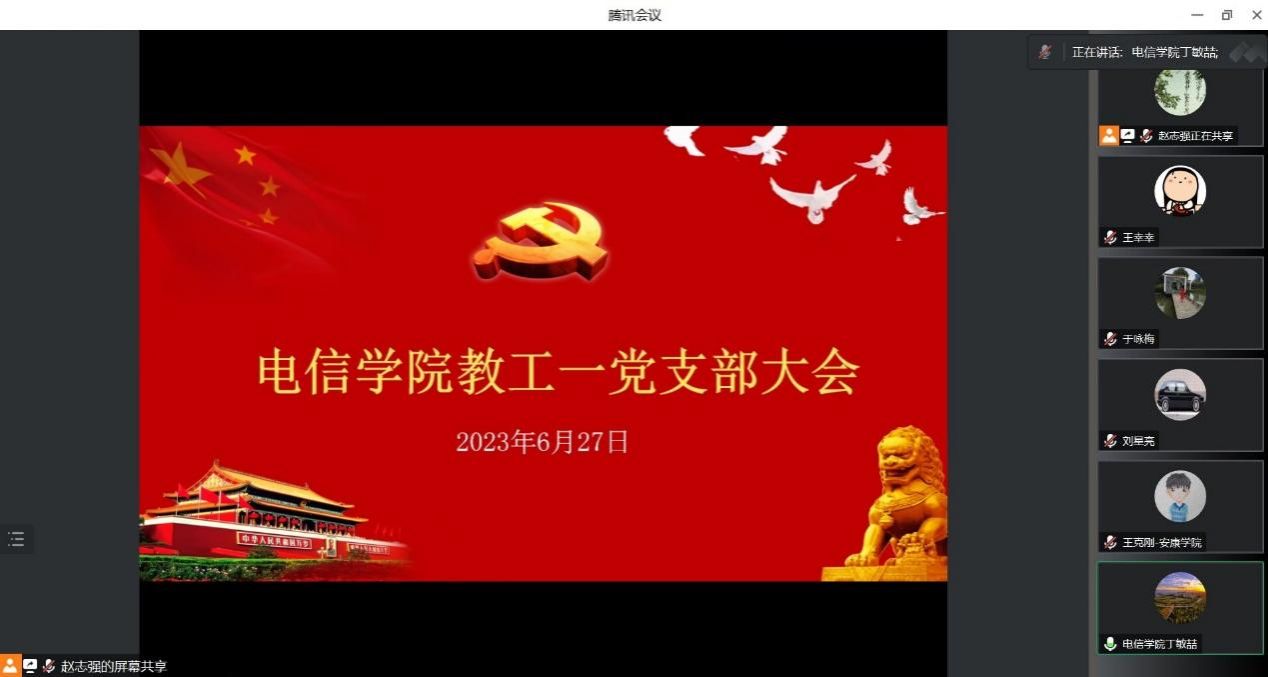 2023年6月27日,PP电子游戏平台网站教工第一党支部通过腾讯会议召开党员大会,会议主要讨论丁敏喆同志能否转为中共正式党员事宜。会议由教工第一党支部书记赵志强主持。