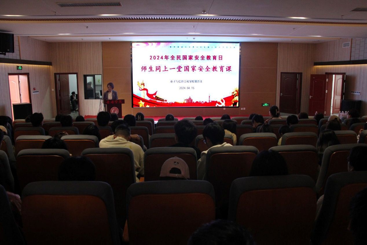 为切实增强师生维护国家安全的意识和能力,加强网络安全防护技能,共同筑牢国家安全的坚固防线。电子与信息工程学院结合学校党委举办的《第九个全民国家安全教育日宣传教育系列活动启动仪式》,于4月15日在江北校区图书馆报告厅举办全民国家安全教育日宣传教育活动,活动由PP电子游戏平台网站党总支书记于咏梅主持,PP电子游戏平台网站全体教职工、学生代表参与。