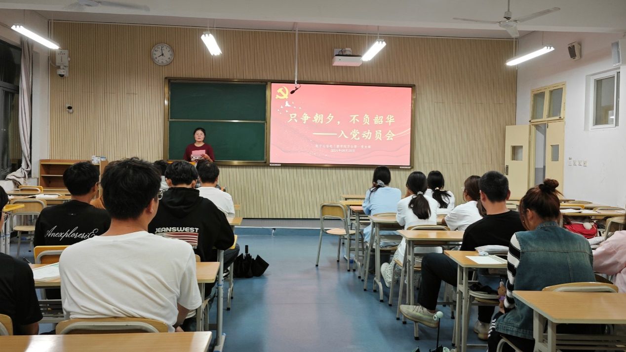 学生第一党支部书记翟子轩从“什么是中国共产党、为什么要加入中国共产党、加入中国共产党需要做什么”三个方面进行讲解,鼓励同学们要树立共产主义远大理想,坚定中国特色社会主义信念,通过对习近平新时代中国特色社会主义思想、党的路线方针政策等理论知识的学习,不断深化对党的认识。他希望同学们大学期间严格要求自己,踊跃递交入党申请书,尽快从思想上、行动上向党组织靠拢,争取早日成为一名光荣的中国共产党党员。