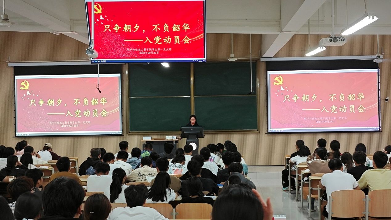 在中华人民共和国75周年华诞之际,为教育引导青年大学生积极向党组织靠拢,坚守“为党育人、为国育才”,抓住2024级新生入学教育关键期,紧密结合党的二十届三中全会精神学习教育,发挥多维度育人效应,帮助青年大学生植下理想信念的种子,让“芯”青年在党旗引领下扬帆起航。9月29日,PP电子游戏平台网站学生第一党支部、学生第二党支部走进各新生班级团支部联合开展2024级新生入党启蒙教育。