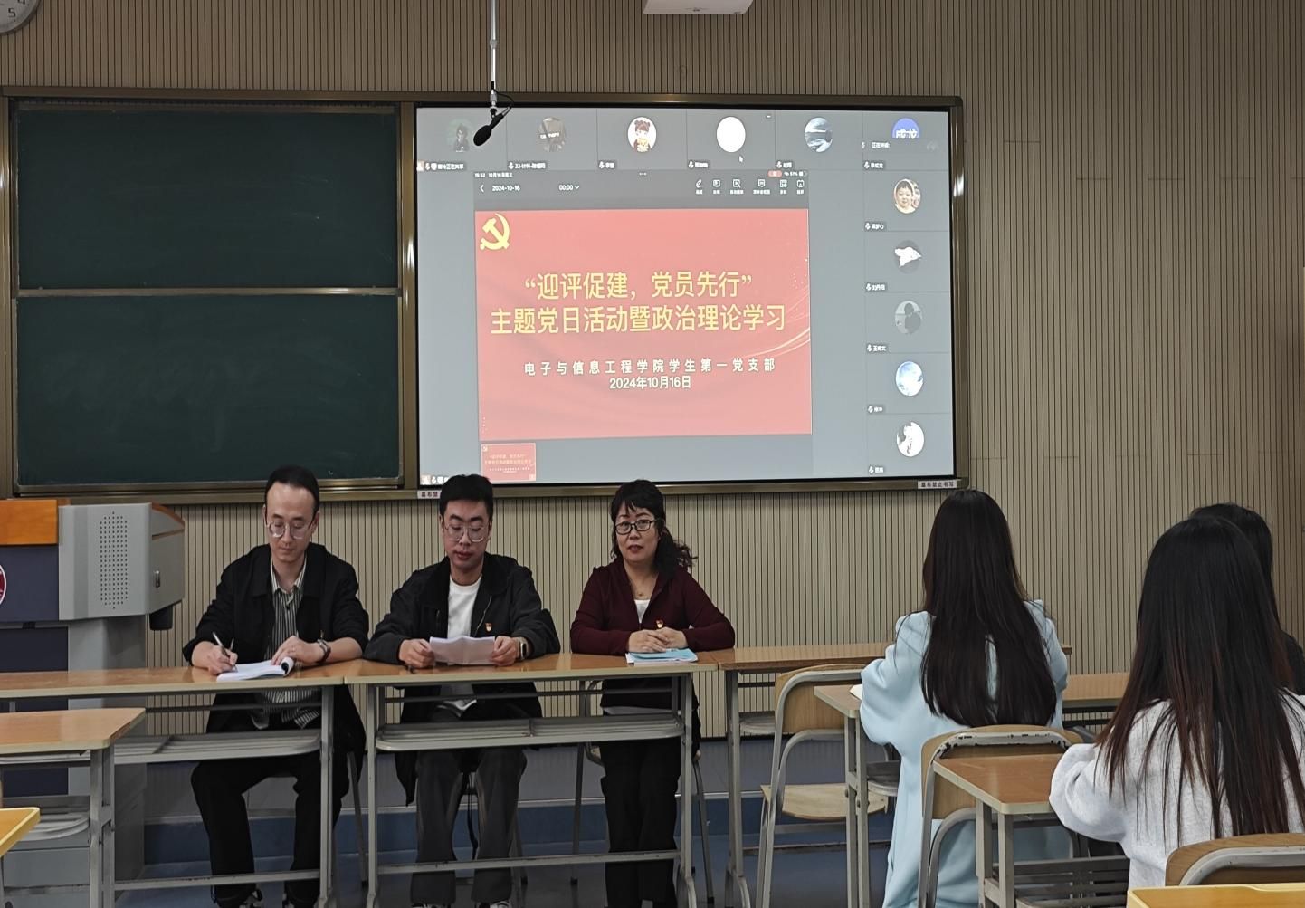 为提高学生党员对本科教育教学审核评估工作重要性的认识,充分发挥学生党员的先锋模范作用,以优异成绩迎接审核评估。2024年10月16日,PP电子游戏平台网站学生第一党支部在一号教学楼1319教室通过线上线下相结合的形式,开展了“迎评促建,党员先行”主题党日活动暨政治理论学习,会议由学生第一党支部书记翟子轩主持,学生第一党支部全体党员、入党积极分子、发展对象参与。