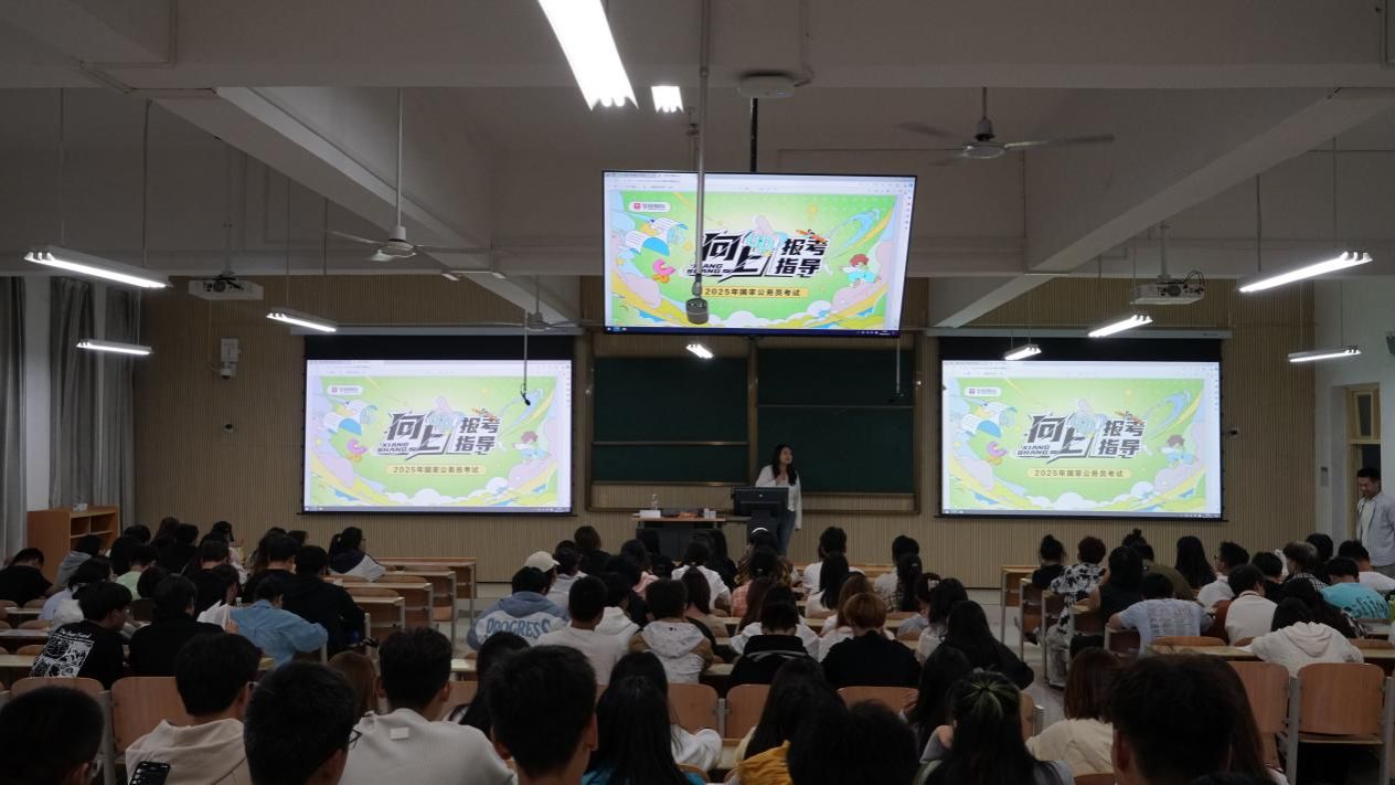 在2025年国家公务员考试即将到来之际,为给电信青年提供专业的备考指导,帮助他们更好地备战考试,提升学院应届毕业生的应考能力,PP电子游戏平台网站特邀华图教育公考培训教师,于10月16日在1203教室以“筑梦公考,启航未来”为主题举办了2025年国家公务员考试公告解读公开课暨考试技巧与策略分享讲座。