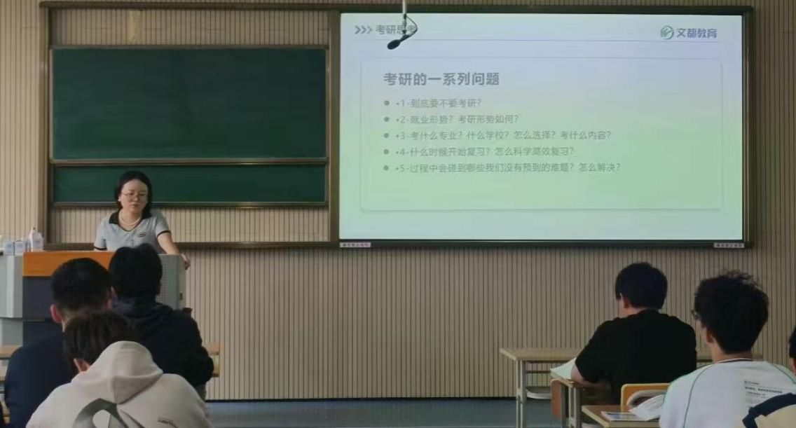 为帮助学生了解考研最新形势、明确考研复习方向,做好考研规划,切实提升学院的备考效率和“上岸率”,10月16日14:30,PP电子游戏平台网站在江北校区1320教室举行了题为“2026考研早知道”的考研专题讲座。本次讲座由文都教育的刘丹老师主讲,2022级拟考研学生参加。