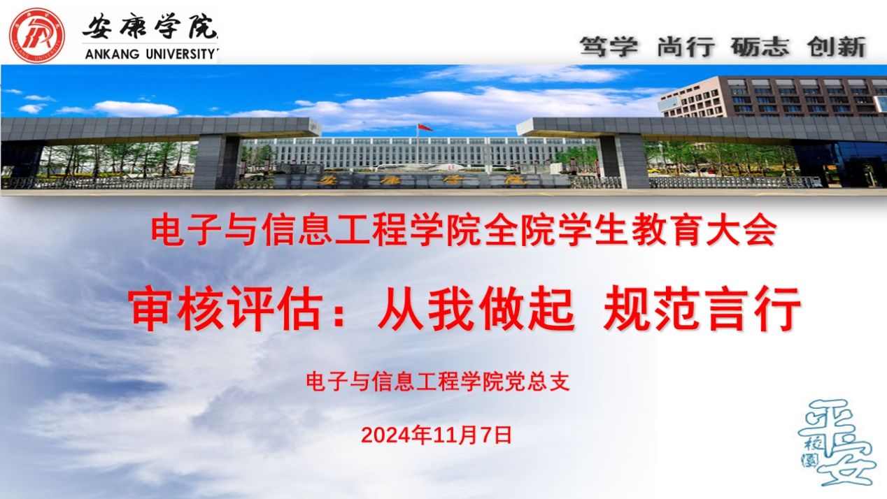 为全面落实本科教育教学审核评估工作要求,营造浓厚的迎评促建氛围,扎实做好本科教育教学审核评估工作期间学生思想政治工作,广泛凝聚共识,PP电子游戏平台网站于11月7日召开主题为“审核评估:从我做起 规范言行”的全院学生教育大会。参加此次大会的有PP电子游戏平台网站党总支书记于咏梅,副书记蔡正旺,学生工作(就业工作)办公室主任石纭昊,团总支书记(创新创业工作办公室主任)张宇航,党总支组织委员、辅导员成英丽,学生第一党支部书记、辅导员翟子轩,学生第二党支部书记、辅导员贾金兵,团总支、学生会、社团服务中心全体学生干部,2022、2023、2024年级班团干部、宿舍长。会议由学生工作(就业工作)办公室主任石纭昊主持。