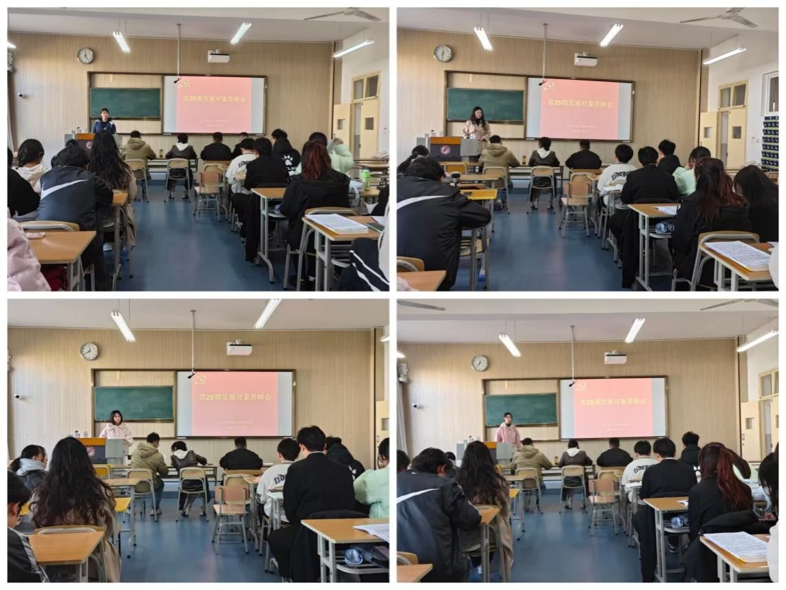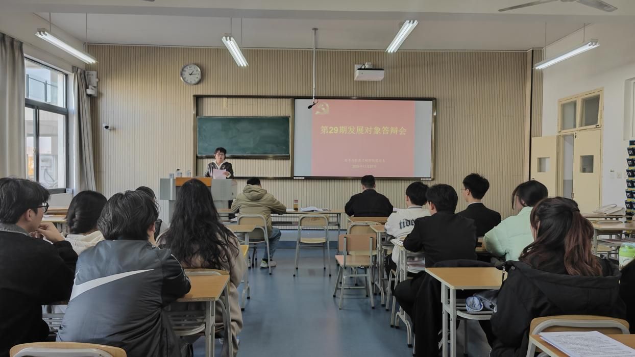 为进一步加强学生党员队伍建设,提高发展党员质量,2024年11月27日下午,PP电子游戏平台网站党总支在1320教室召开第29期发展对象述职答辩会。PP电子游戏平台网站党总支组织委员成英丽、学生第一党支部书记翟子轩、学生第一党支部组织(纪检)委员张宇航、学生第二党支部书记贾金兵、学生第二党支部组织(纪检)委员石纭昊参加第29期发展对象参加述职答辩会。会议由学生第二党支部中共预备党员桑俊毅主持。
