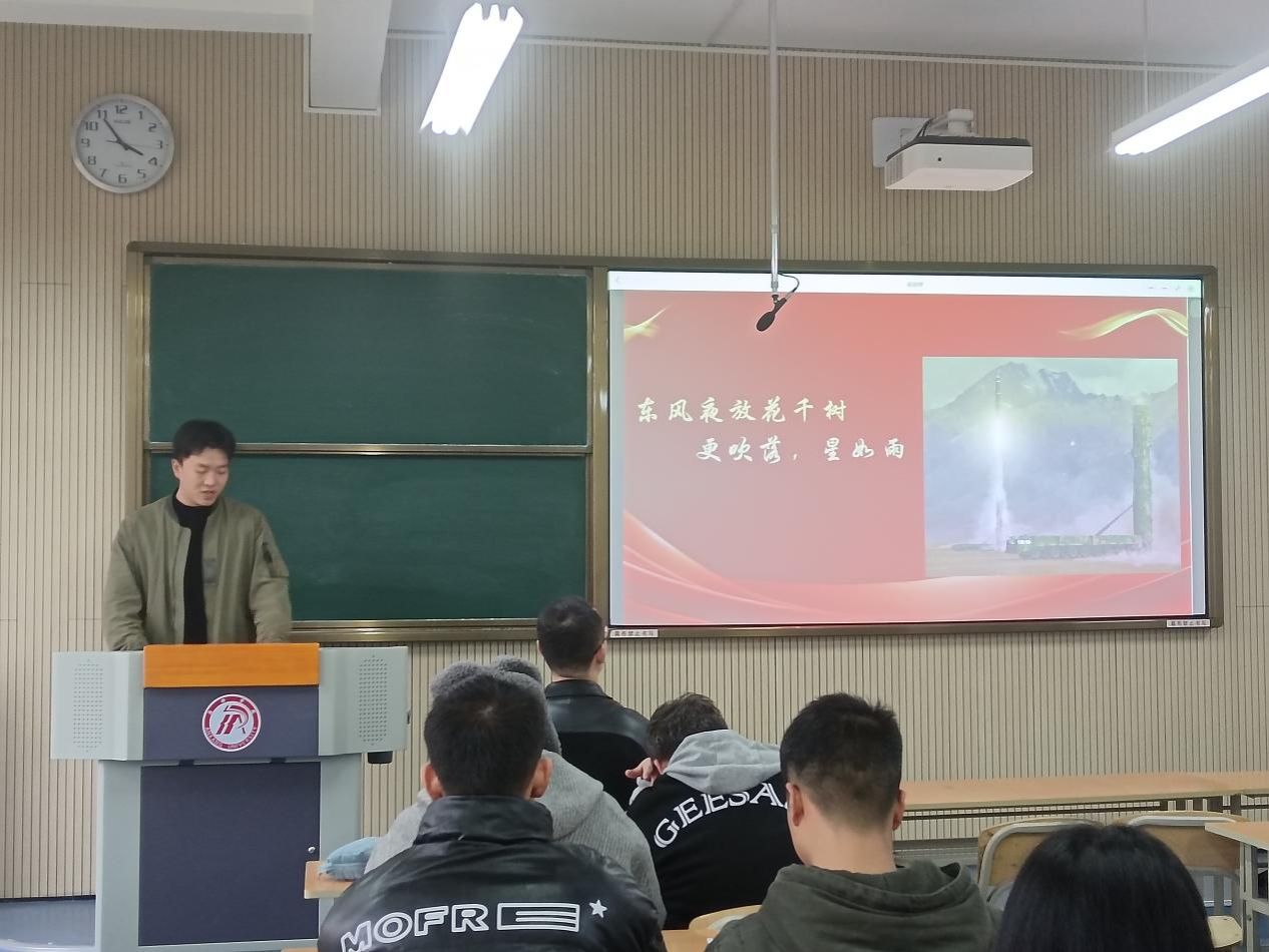 2022级计算机科学与技术1班夏源博,原服役于中国人民解放军火箭军某部。他讲到,我们不是生活在一个和平的时代,只是生活在一个和平的国家。经不起风吹日晒雨打,居安而不知思危,这绝不应是我辈作风。我们应该带着“黄沙百战穿金甲,不破楼兰终不还”的志气,“上马杀敌,方显男儿本色”的豪气,“中华要灭亡,湖南人先死绝”的血气投身军营。他认为部队虽苦,但是值得,生命中有了当兵的经历,青春将会变得更有价值、更有意义。