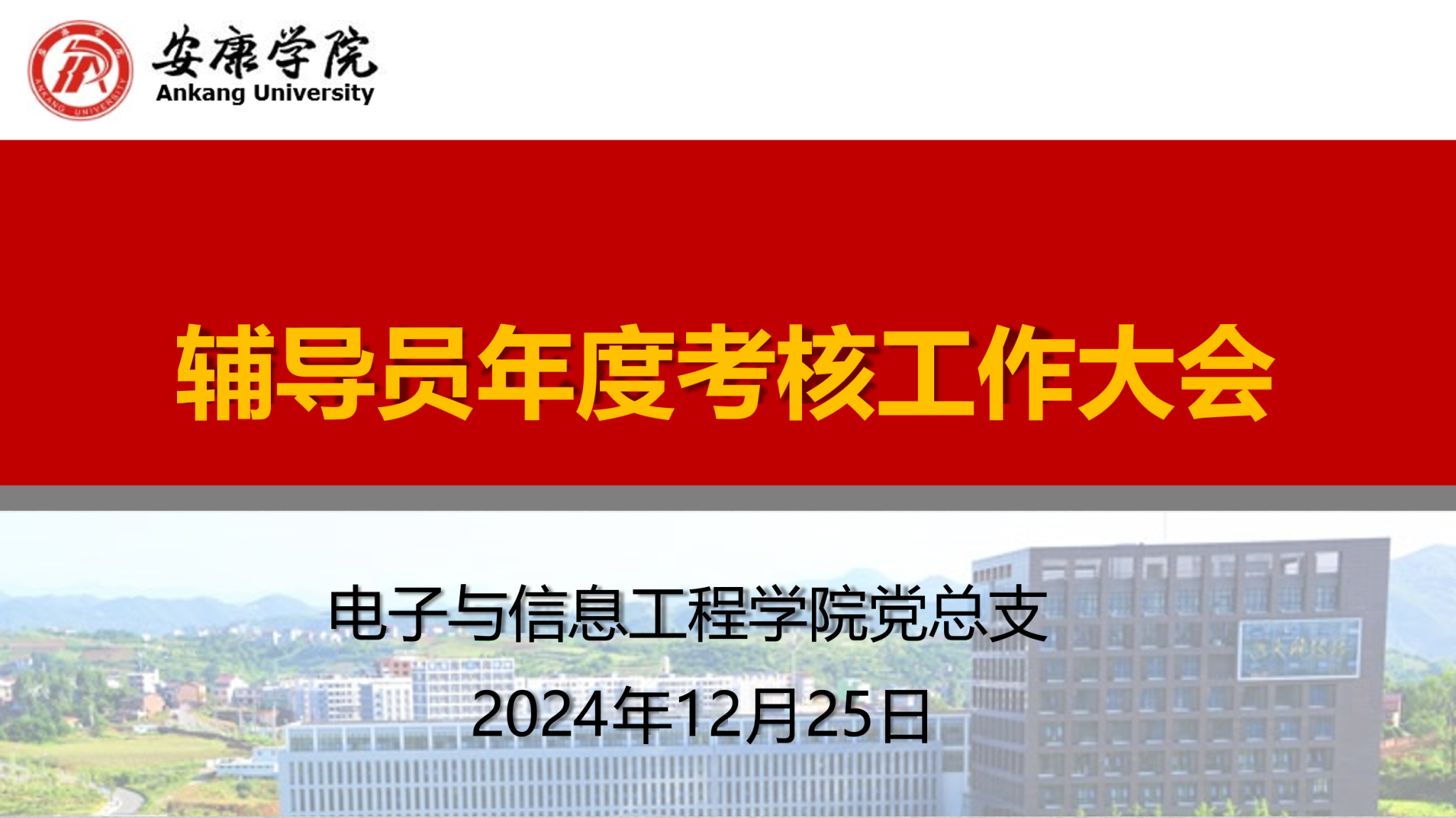 为切实加强辅导员队伍建设,落实立德树人根本任务,充分展示我院辅导员队伍良好的精神风貌,做好学生教育与管理工作,12月25日下午,PP电子游戏平台网站在逸夫科技楼9楼大会议室召开2024年辅导员年度考核工作会。PP电子游戏平台网站辅导员考核工作小组成员及全体辅导员参加此次会议。本次会议由党总支书记于咏梅主持。