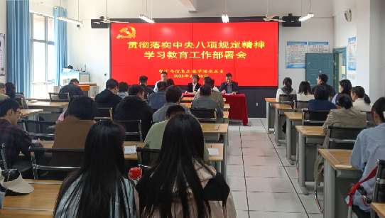3月25日,PP电子游戏平台网站召开党的建设工作会议,专题研究部署深入贯彻中央八项规定精神学习教育工作。学院班子成员、党总支委员、科级干部、各党支部书记等参加会议。3月26日,学院召开深入贯彻中央八项规定精神学习教育工作部署会,全体党员参加会议。