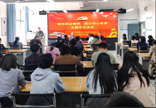 为深入贯彻落实全国两会精神,提升全体党员的政治素养和使命感,同时为扎实推进“五联五做”工作的开展,加强教工党支部与学生党支部的联系,3月26日下午,PP电子游戏平台网站教工党支部和学生党支部在逸夫科技楼B602开展“领悟两会精神,践行初心使命”主题党日活动,本次活动由丁礼磊同志主持。