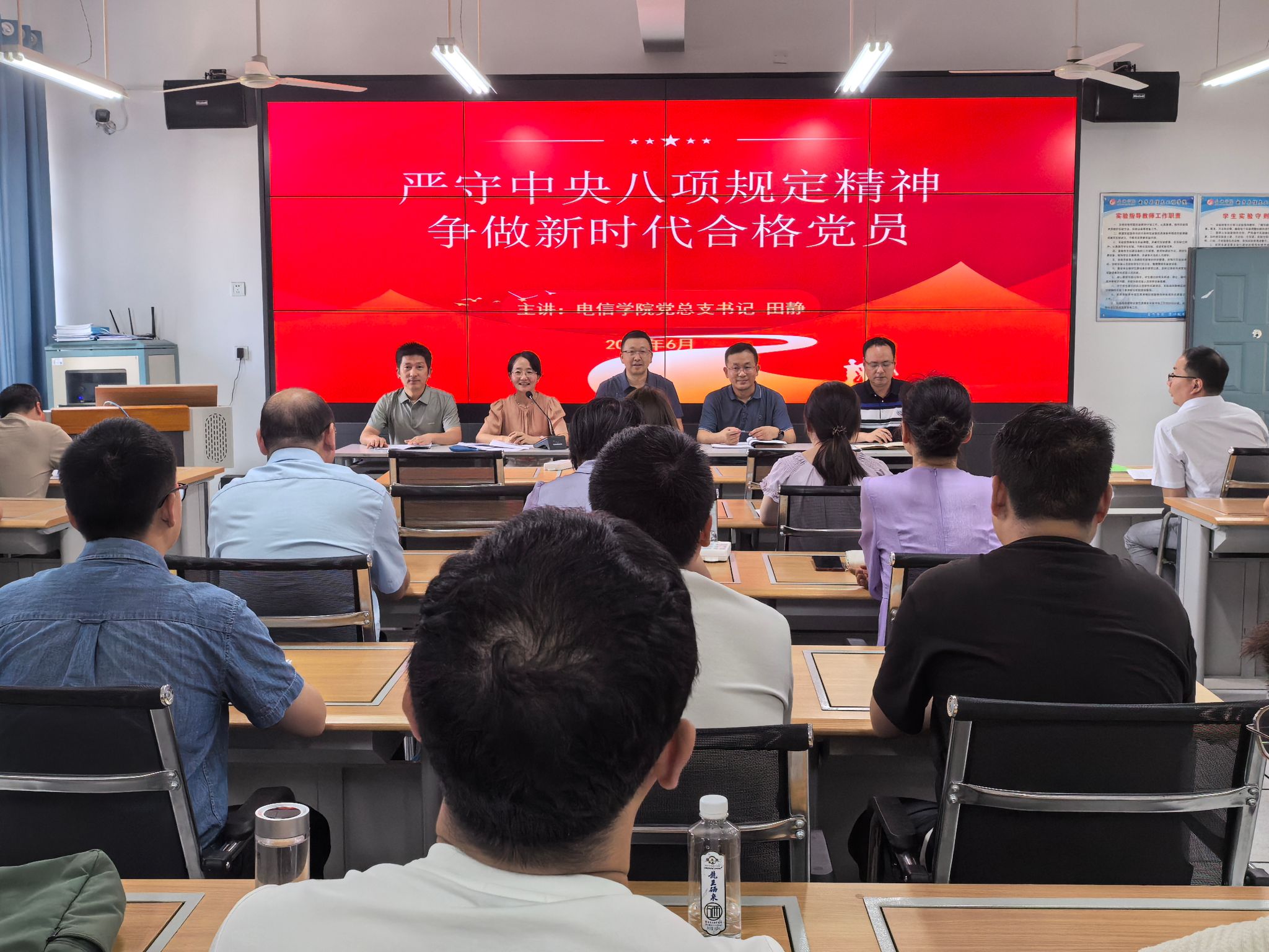 党总支书记田静以《严守中央八项规定精神 争做新时代合格党员》为题,讲授深入贯彻中央八项规定精神学习教育专题党课。田书记从“深刻认识开展深入贯彻中央八项规定精神学习教育的重大意义”“全面理解中央八项规定精神的核心要义”“践行中央八项规定精神,争做新时代合格党员”三个方面入手,对深入贯彻中央八项规定精神学习教育的重大意义、如何践行中央八项规定精神等进行系统阐释与深入解读。她指出,全体党员必须从思想上高度重视作风建设,在行动上严格落实中央八项规定要求。她要求党员教师要切实做到:强化思想认识,提高政治站位;规范日常行为,严守纪律底线;优化工作作风,力戒形式主义;树立良好形象,发挥模范作用。
