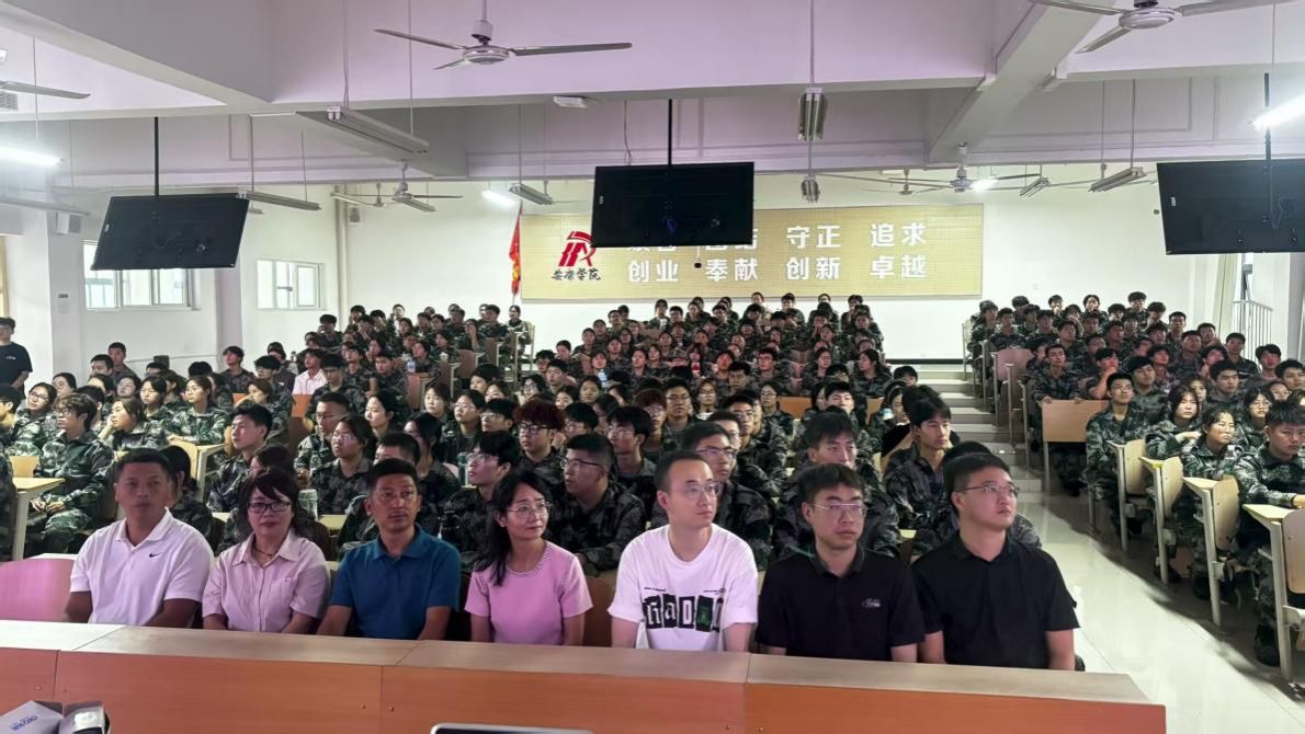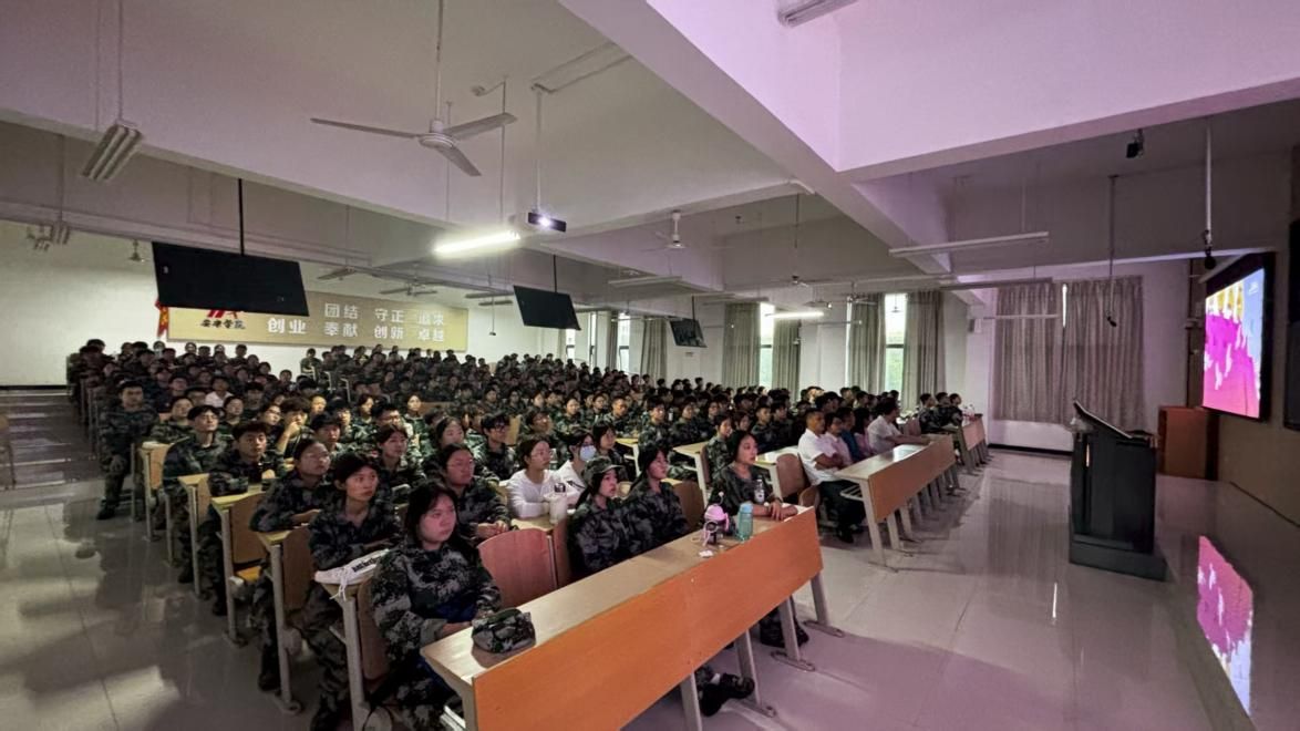 军训期间,学院精心组织新生观看九三阅兵直播。当看到屏幕上军人迈着铿锵有力的步伐、组成整齐划一的方队依次走过时,同学们目光专注、心潮澎湃,深受震撼与触动。大家纷纷表示,要以人民子弟兵为榜样,在军训中不断锻炼自己、磨砺意志,以更饱满的状态完成各项任务。此外,学院也开展了教育讲座,在帮助新生锤炼身体素质的基础上,进一步增强他们的国防意识和安全意识。