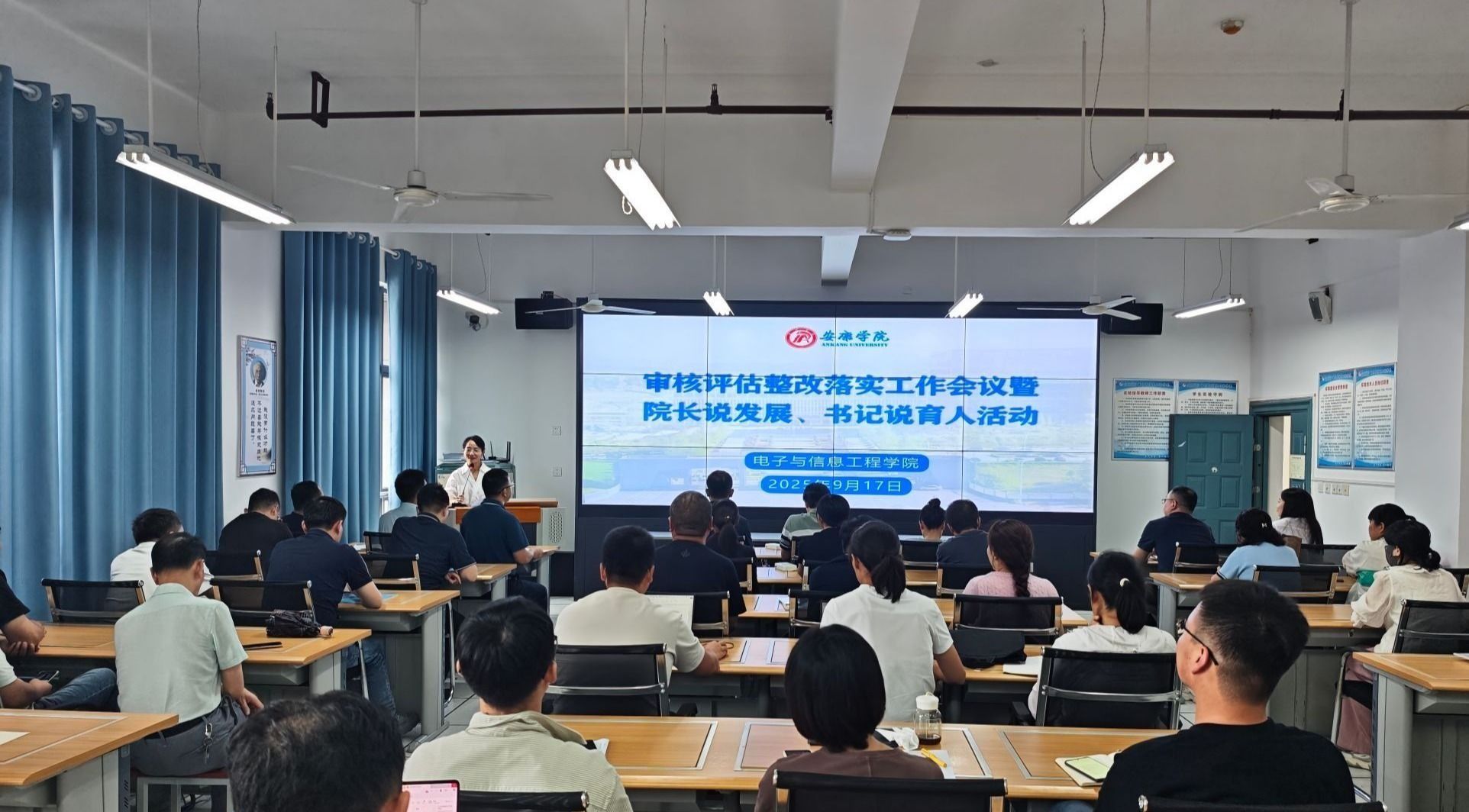 9月17日下午,PP电子游戏平台网站召开审核评估整改落实工作会,安排部署审核评估整改落实工作督导检查任务,并开展院长说发展、书记说育人活动。学院全体教职工参加活动,活动由学院院长王克刚主持。