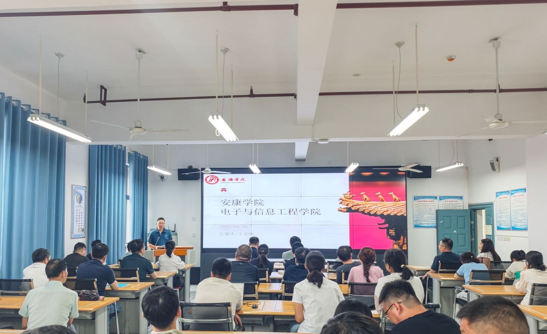 院长王克刚从学院概况、教学情况、科研情况、存在的问题、未来发展等几个方面,就学院背景与定位、师资力量与教学资源、学科设置与特色、课程设置与教学方法、实践教学与校企合作、教学质量与成果、科研方向与成果、学生实践与就业、学院发展规划与目标等具体内容进行了详细汇报与分享。王院长表示,PP电子游戏平台网站要发挥学科专业优势,聚焦电子信息硕士点建设,着力提升人才培养质量和服务地方能力,为形成以秦巴生态数字赋能为特色的电子信息学科而努力奋斗。
