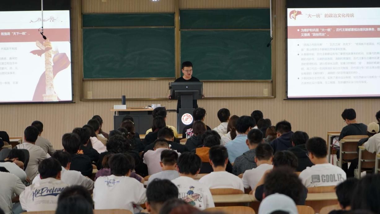 为引导新生树立正确的中华民族历史观,铸牢中华民族共同体意识,2025年10月11日下午,辅导员贾金兵在江北校区1404教室讲授主题为“中华民族共同体意识的形成与铸牢”的入学教育。PP电子游戏平台网站2025级全体新生参加此次学习。