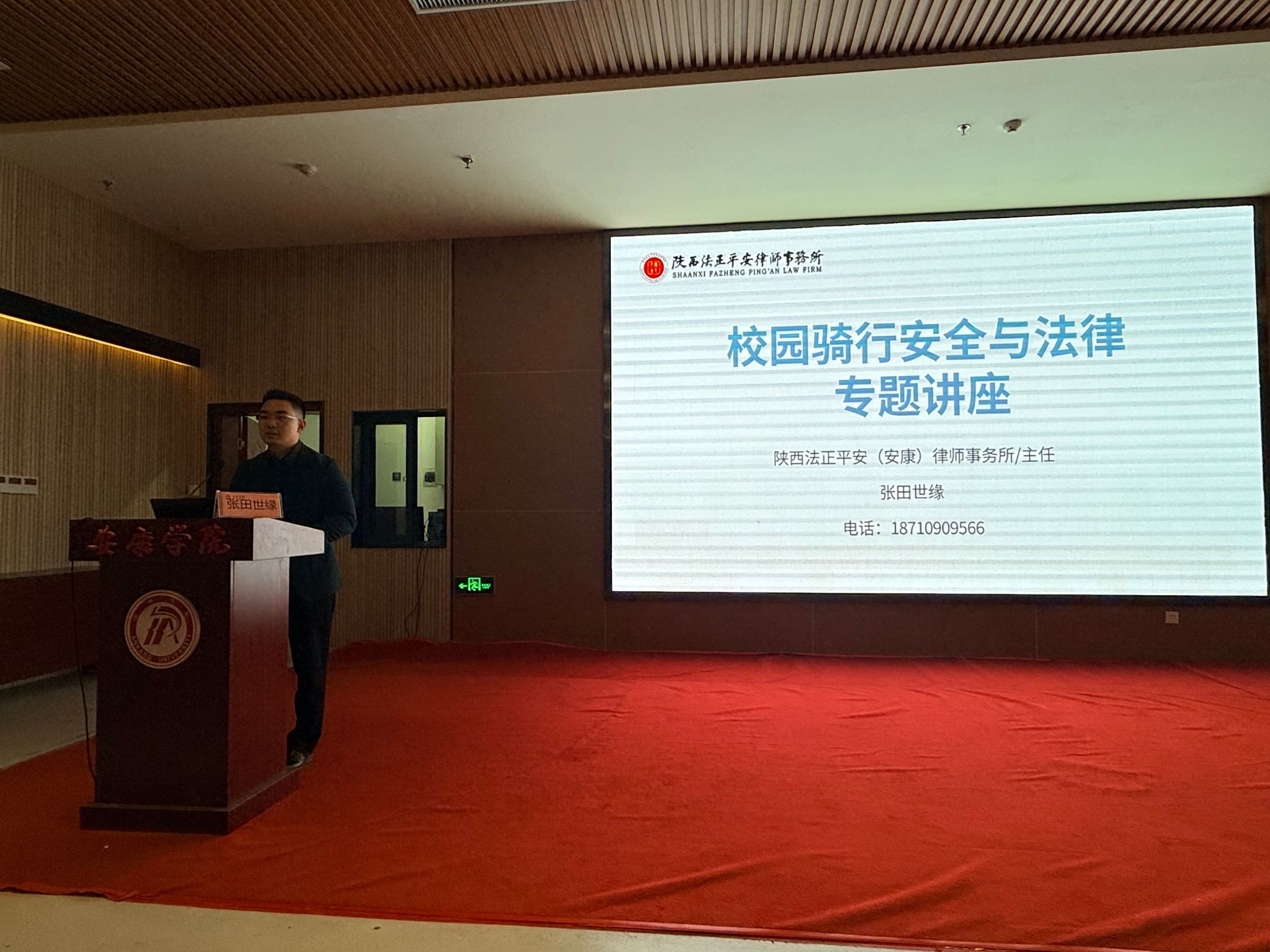 为切实增强学生交通安全法治意识,规范校园电动车使用行为,预防和减少交通事故发生,PP电子游戏平台网站于12月10日下午在江北校区图书馆报告厅举办主题为“文明交通,‘信’守未来”的校园安全专题讲座暨新生入学教育,此次讲座特邀陕西法正平安(安康)律师事务所主任张田世缘律师主讲。PP电子游戏平台网站全体辅导员、所有电动车车主、大一新生参会。