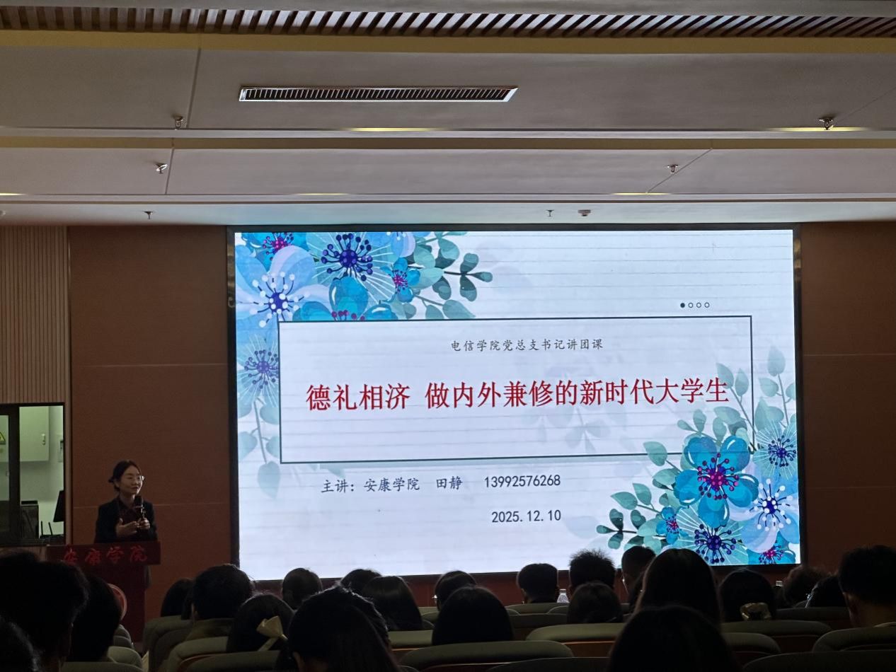 为加强学院团学组织干部思想道德修养,提升干部综合素养,助力新时代大学生成长成才,12月12日,PP电子游戏平台网站党总支书记田静以“德礼相济 做内外兼修的新时代大学生”为主题,为全院团学组织干部带来了一堂内涵深刻、意义深远的专题团课。学院团总支、学生会、社团服务中心全体学生干部参与学习。