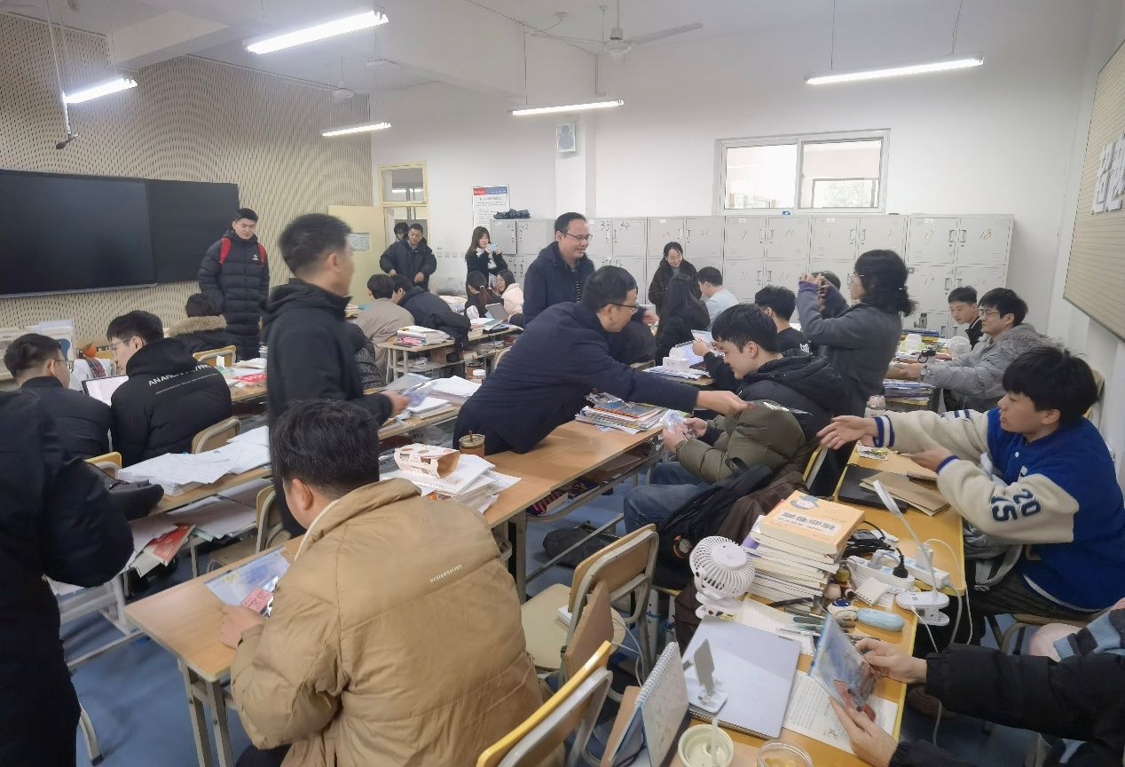 慰问过程中,学院领导与考研学子亲切交谈,详细询问大家的考前准备进度、心态调节情况及作息安排,仔细了解学子们是否存在考前突发困难和实际需求。领导们充分肯定了学子们长期以来不畏艰辛、刻苦钻研的拼搏精神,鼓励大家在考前最后阶段放下思想包袱、坚定备考信心,以平和心态做好考前收尾准备,养足精神、从容应考。同时,反复叮嘱学子们务必注意考前饮食安全和出行安全,提前核对好准考证、身份证等考试证件及必备用品;若遇到任何突发问题第一时间与学院、老师沟通,强调“学院永远是大家最坚实的后盾”。