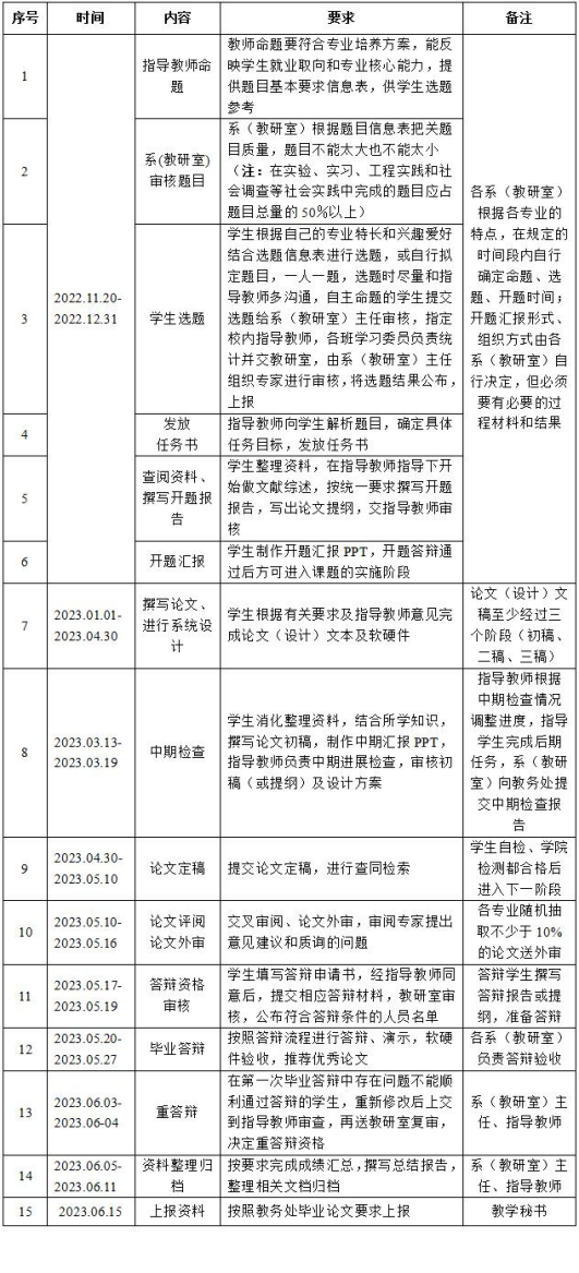毕业论文(设计)是本科教学最重要的实践教学环节,PP电子游戏平台网站2023届本科毕业论文(设计)的各项工作将在2022年11月~2023年6月期间完成,为更好地开展这一极为重要的实践环节,按照《PP电子游戏平台网站本科生毕业论文工作流程》要求,现就2023届毕业论文(设计)相关工作布置如下,请各系(教研室)仔细阅读并认真执行。