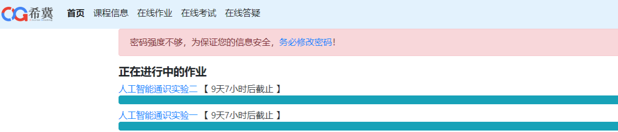 (2)实践环节学习:学生在规定时间内容登录课程实践平台,平台访问地址:校园内网:http://172.19.10.1;外网:http://59.74.48.90,从学生入口登录,账号和密码都是学号。实践部分配套有实践操作视频,以供学生参照学习。实践课程视频资料网址:/info/1118/9285.htm。其中毕业班仅仅需要完成实验11596和实验11589,进入平台即可看到实验作业任务。实践作业提交截止时间2025.5.24。