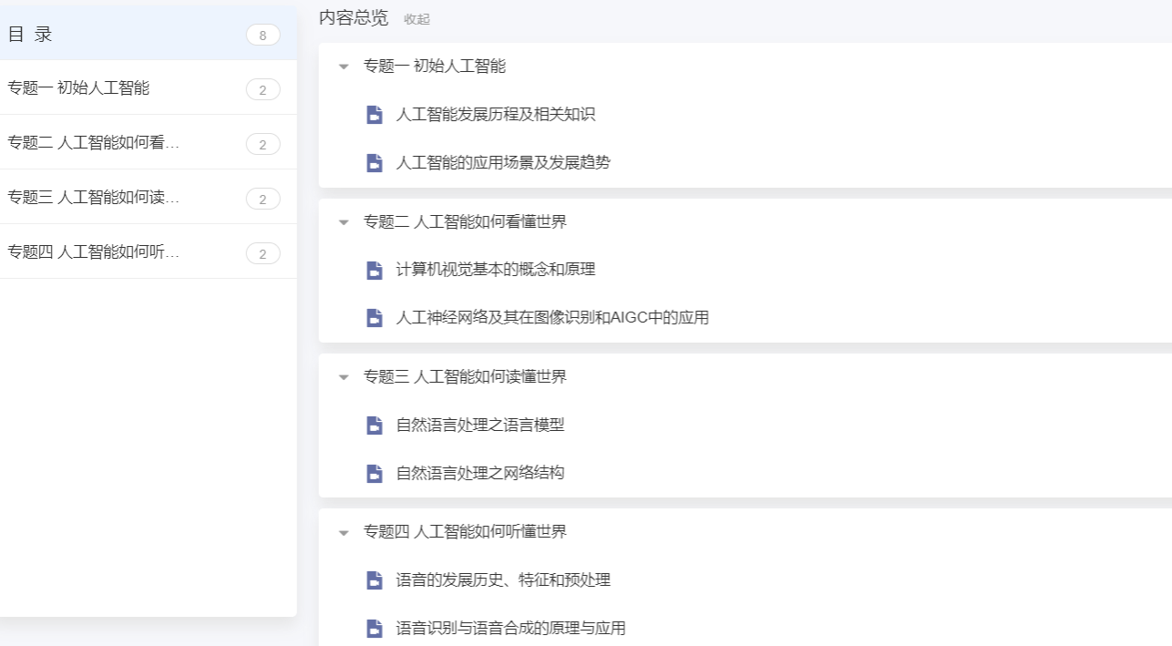 为了提高应届毕业班学生职业能力,使学生更好地适应社会发展,人工智能教学团队录制了线上教学视频资源,面向全体应届毕业班学生免费开放,请应届毕业班学生积极参加学习,学习时间节点为:2025.5.15-2025.5.24。需要学生完成学习任务分别为: