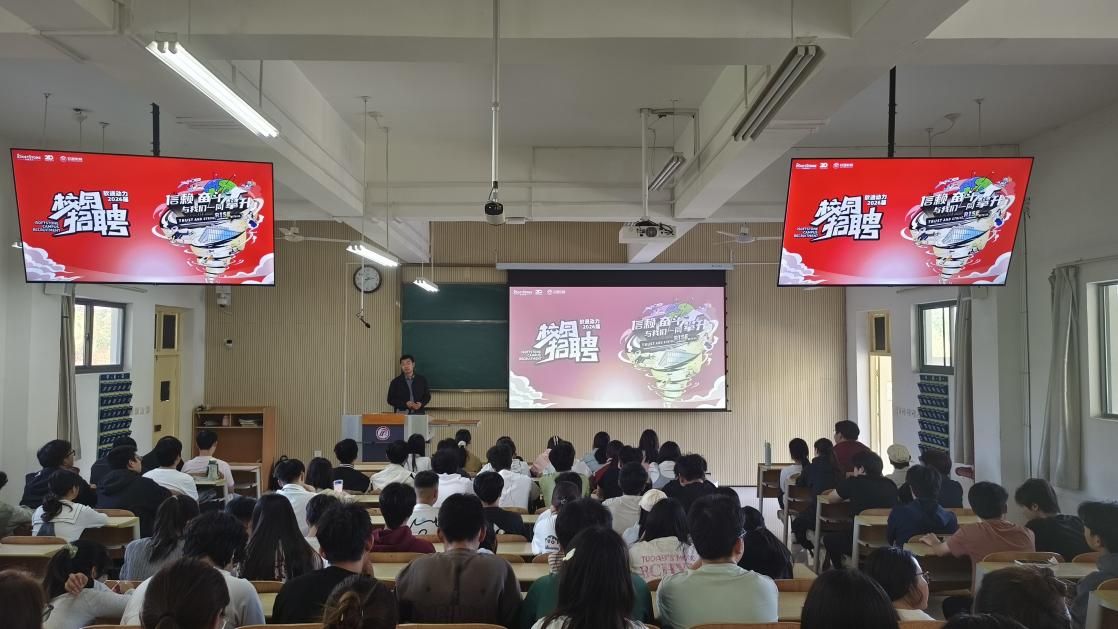 本次宣讲会由资深IT技术专家、教育创新者张展主讲。他拥有ICT(信息与通信技术)领域超10年从业经验,曾任软通动力项目总监,在多领域技术开发与人才培养方面积累了深厚经验。宣讲过程中,张展围绕春招、秋招关键时间节点展开讲解,着重强调:扎实的代码功底、清晰的编程思维是计算机类专业学生的核心竞争力,是叩响名企大门的“金钥匙”,为学子们明确了能力提升的关键方向。